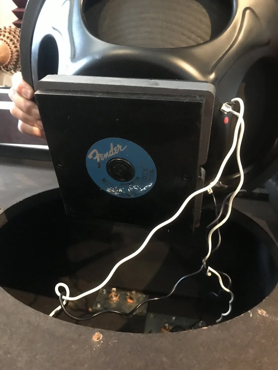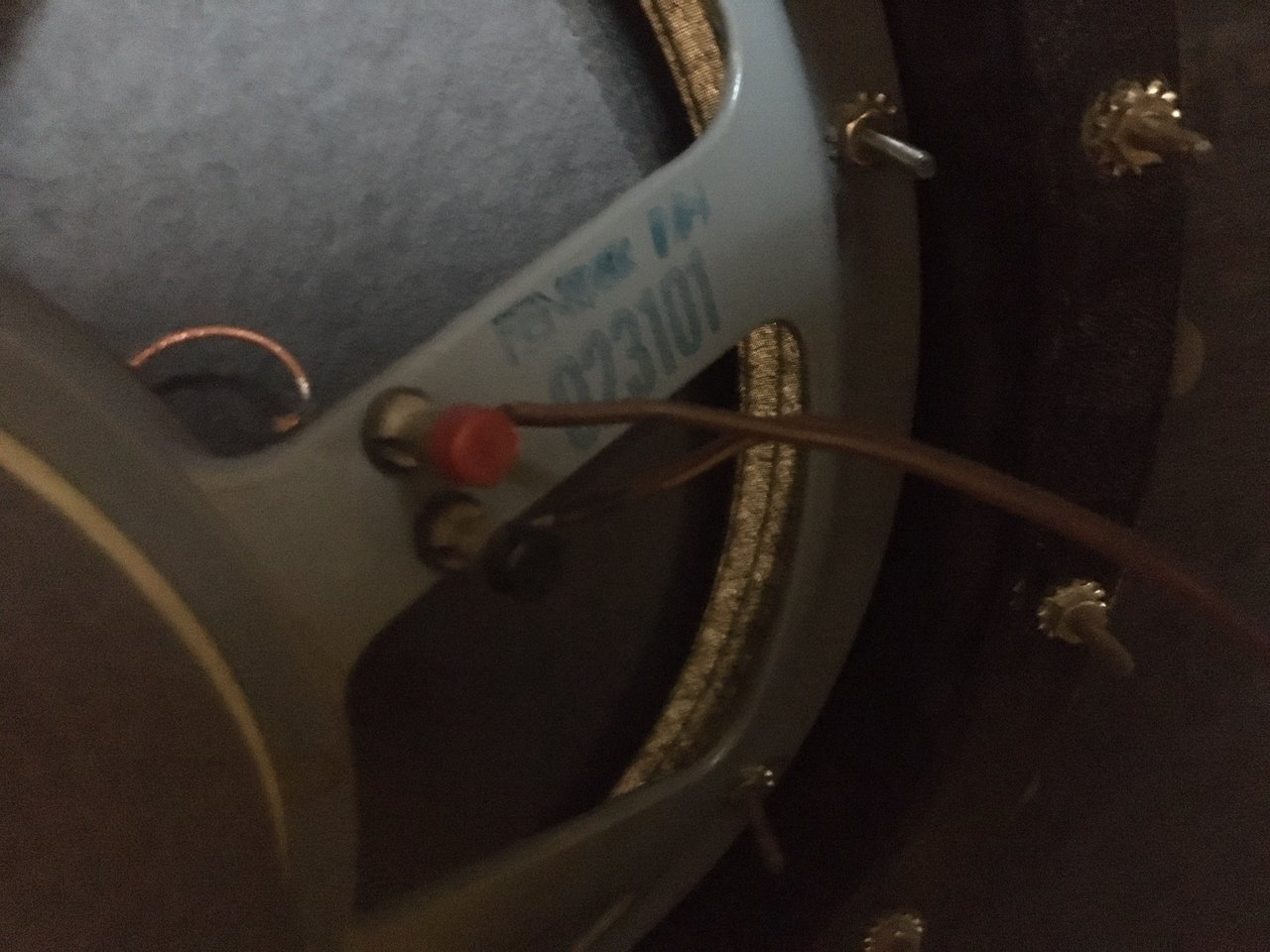 Die EV B215-M hat zwei EV EVM 15L drin in einer Kammer. Die obere Hälfte ist mit irgend einer Wolle ausgekleidet, die untere Hälfte ist aus blankem Holz und beherbergt die Frequenzweiche an der Rückwand und den Schaltplan am Boden.