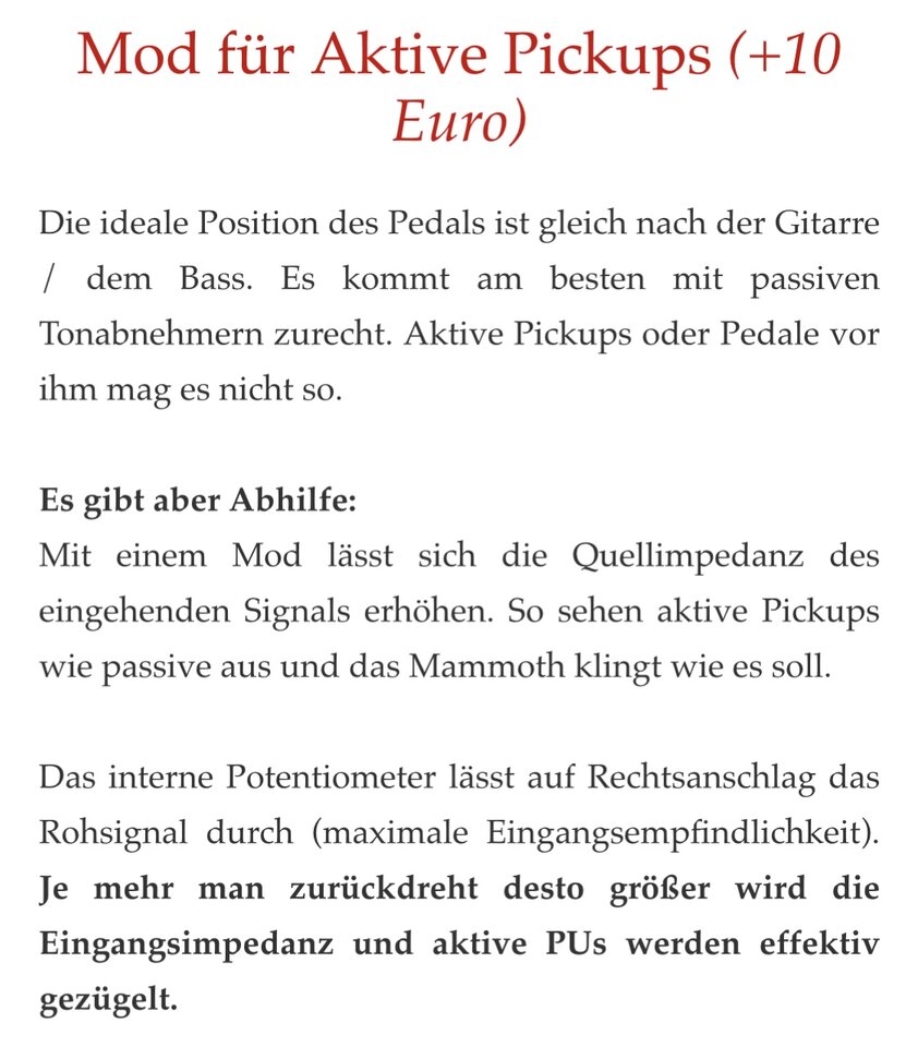 Und mehr habe ich jetzt nicht geschaut, wobei ich mir die drei hier erwähnten eher wahllos herausgepickt habe. Aber so wie aussieht, drauf wetten kann man wohl nicht dass außerhalb der Boss/(Ibanez) Welt alles "true" wäre und mit 1 Meg Eingängen versehen.