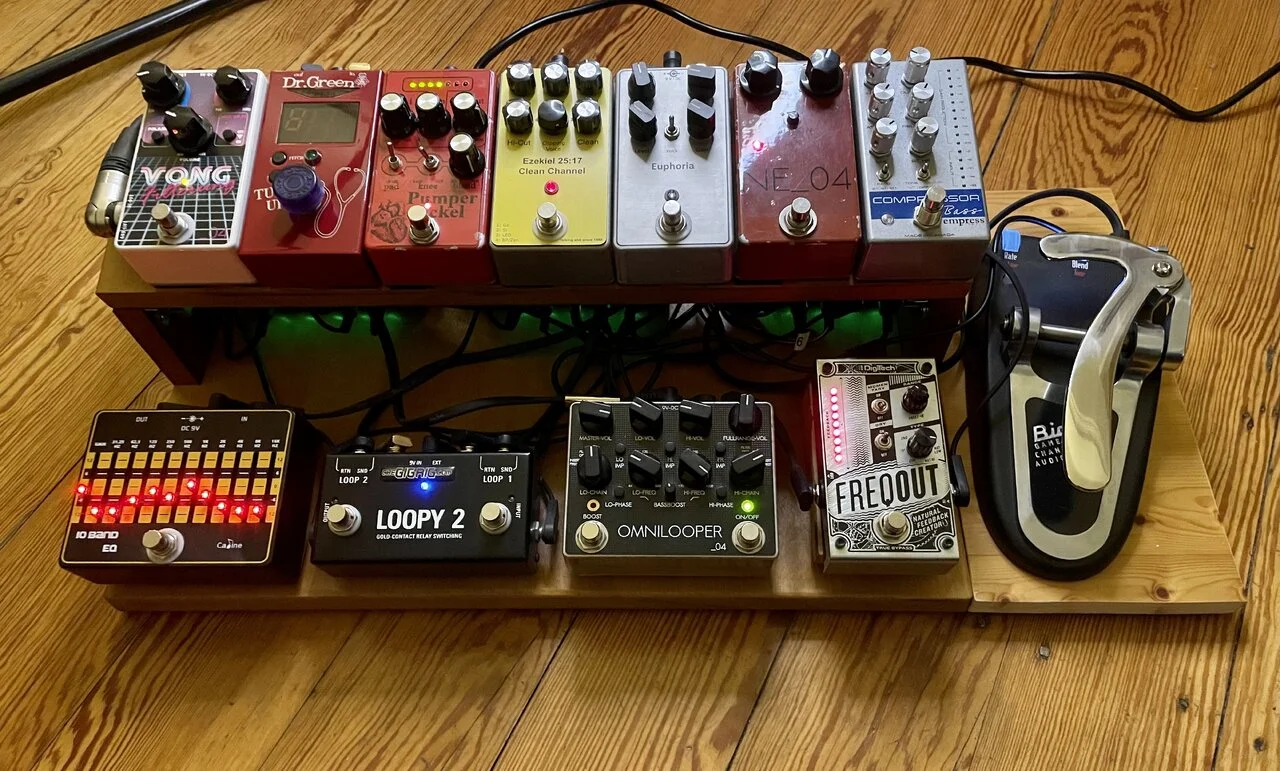 Bei unserem Gitarristen befindet sich auf seinem Effekt-Board z.B. so etwas drauf: