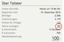 Ich habe angeblich 193 aktive Anzeigen. Das ist die Anzeige innerhalb einer aktiven Kleinanzeige. Bei den Infos des Users wird es richtig dargestellt...