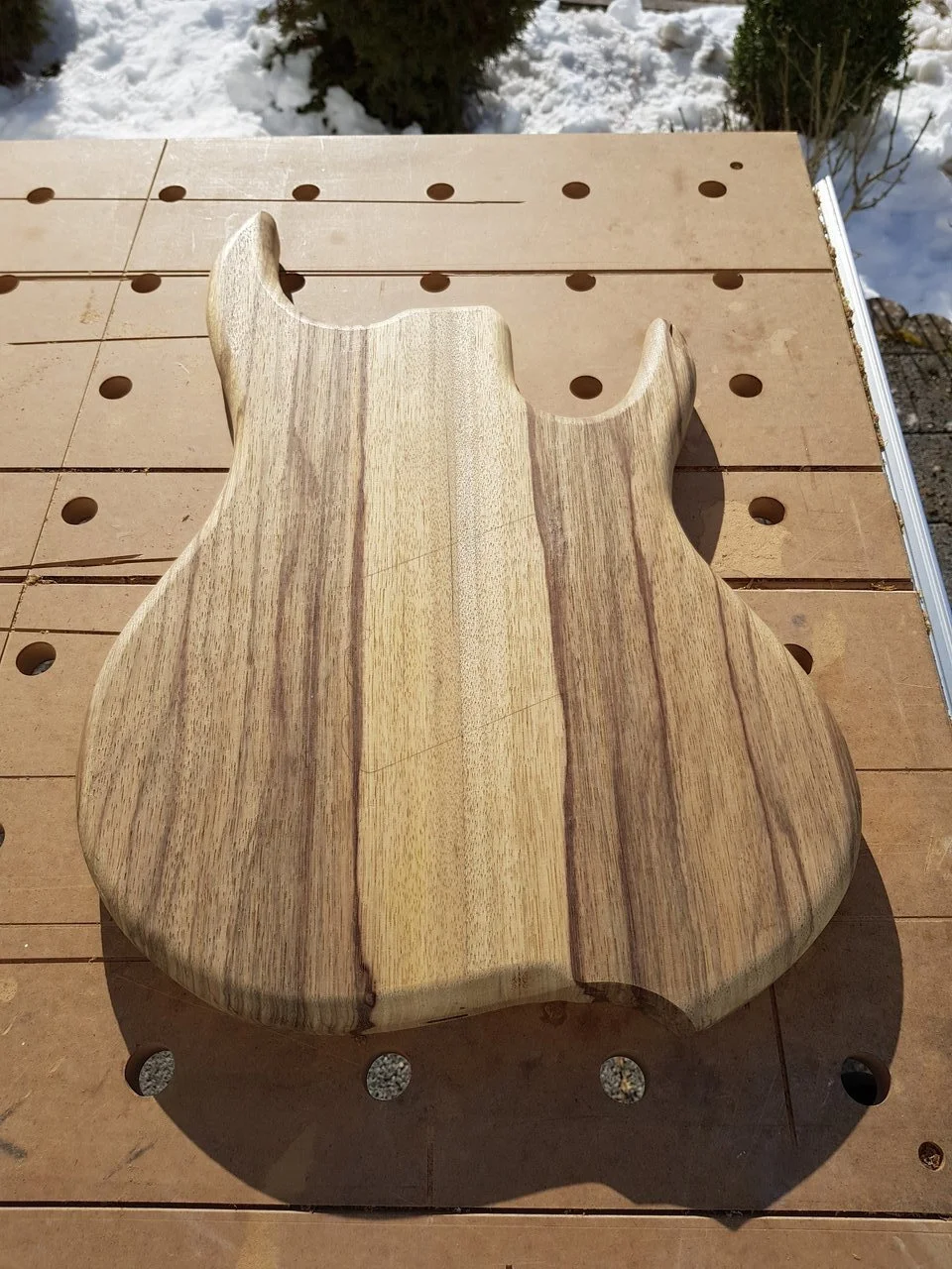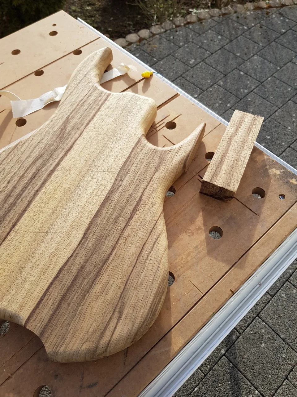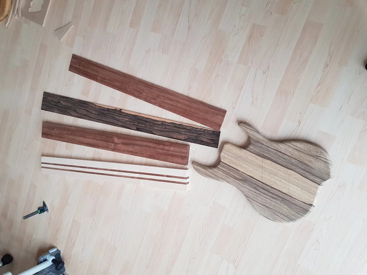 Das Holz durfte die letzten 4 Wochen erstmal entspannen, wird demnächst weiter gehen mit dem Bau des Halses. Ich habe mir für #2 überlegt ein Kopfplatten Aufleimer aus dem Zirikote Griffbrett zu machen, da freue ich mich schon echt mega drauf