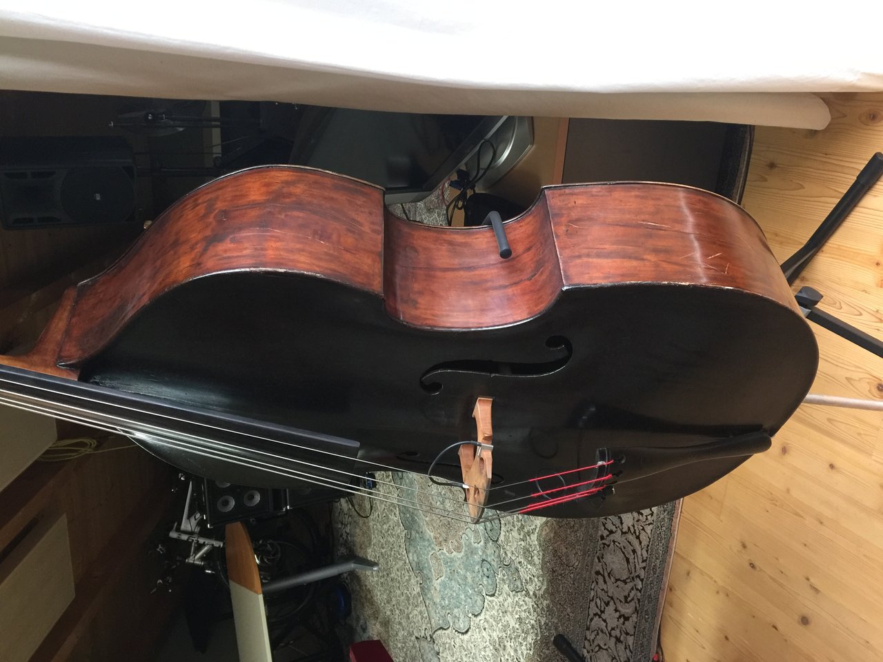 Sehr schöner, ca. vor 4 Jahren komplett restaurierter Solo-Bass. Der Kontrabass ist dokumentiert in den 50 Jahren in Franken als Jazz Bass und für populärmusik gespielt worden.