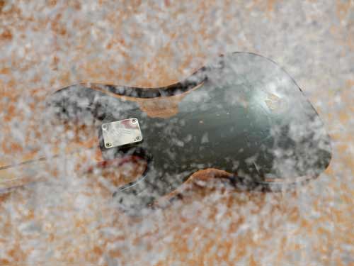 Er hat einen Swamp Ash-Korpus mit Wölkchenahorndecke. Das ganze blau gebeizt und mit Öl/Wachs versiegelt.