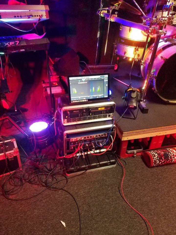 FOH Platz. Hier sieht man links noch die Kabeltrommel mit 50m rotem CAT5-LanKabel...