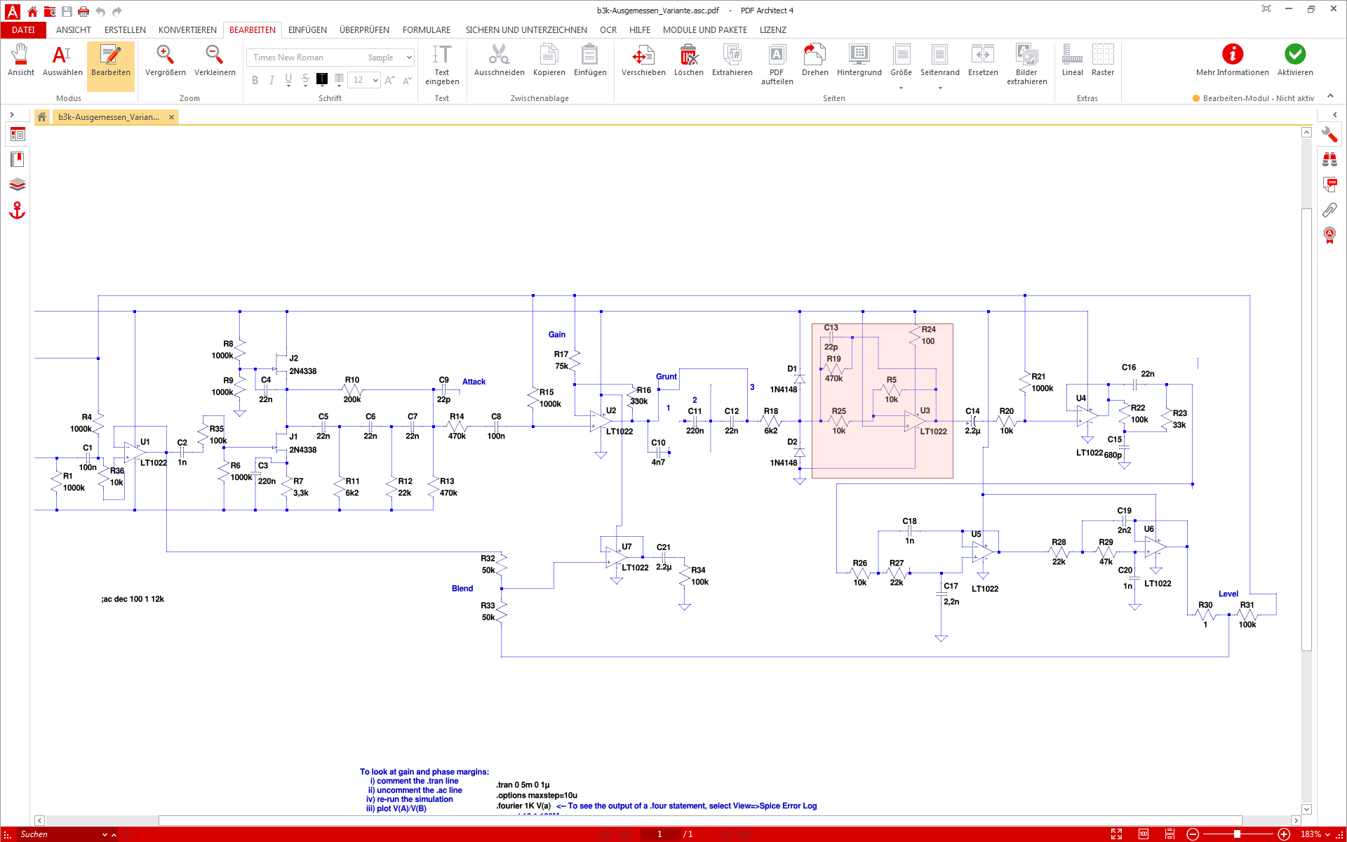Die J-Fets sind natürlich J201, in der roten Markierung hab ich nur einen diskreten Inverter für die Simulation "gebaut". Hier sitzt dann natürlich der CD4049UBE (Unbuffered! Wichtig!). Die restlichen Inverter werden eingangsseitig auf Masse gelegt.