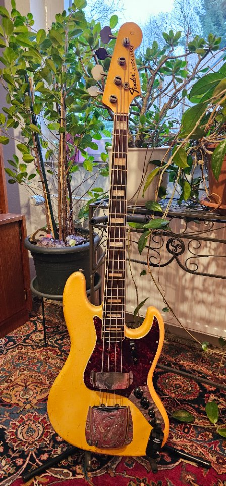 Ein Stück Hartholz in der gleichen Stärke wie die schmale Seite des Sattels seitlich anlegen und mit dem Hammer losklopfen. Also von der Seite der Dots auf dem Binding, oder von unten.
