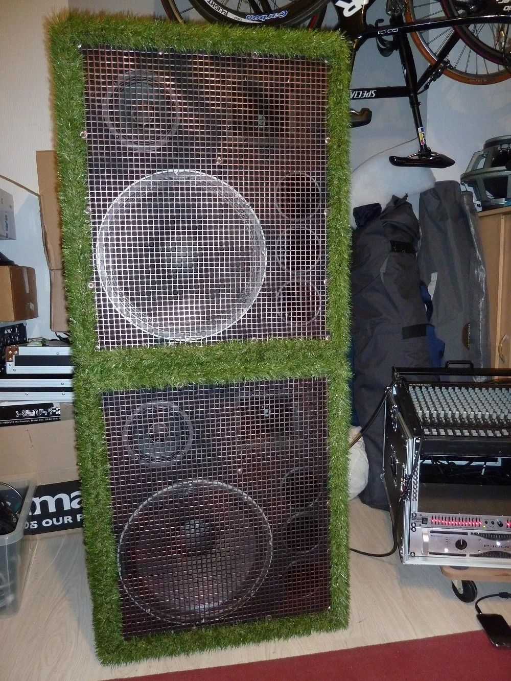 Die Facts: FaitalPRO 15PR400 und 2x FaitalPRO 3FE22 in 15mm Pappelmultiplex, 60X60x60cm, netto um die 115L, auf ca. 45Hz abgestimmt, Trennfrequenz bei ca. 1,3kHzb, Belastbarkeit 400W/8Ohm, Gewicht deutlich unter 20kg