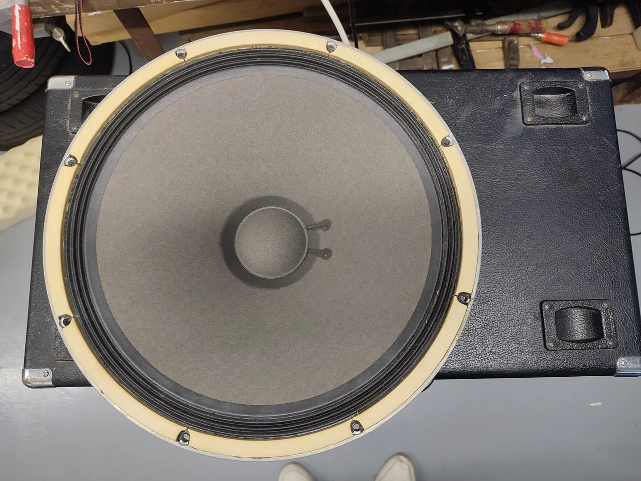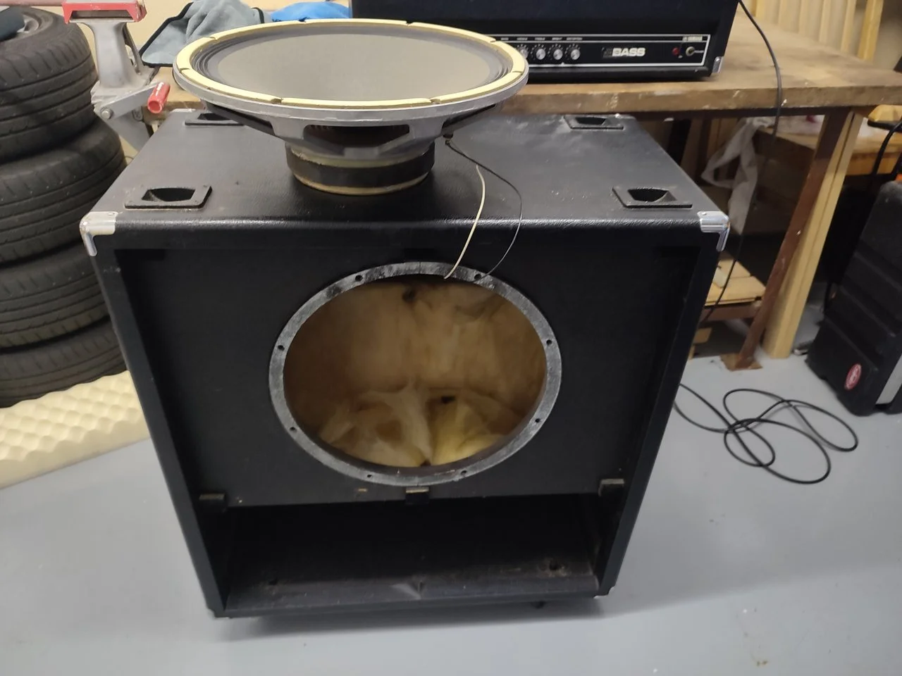 Das Topteil funktioniert an den anderen Boxen einwandfrei (und erstaunlich gut), die Box klingt aber als wenn ich Gitte drüber spielen würde. Null Bass und total harsch.