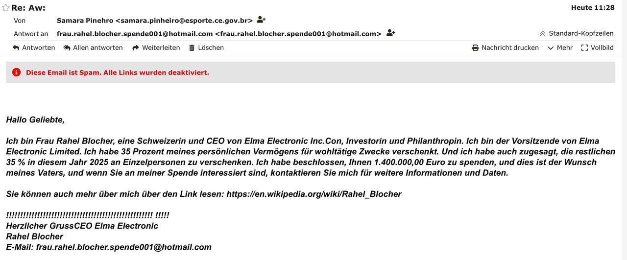 Wie kommst du dann an diese höchst seriöse E-Mail?Ich bin weder Samara noch Frau rahel blocher![]()