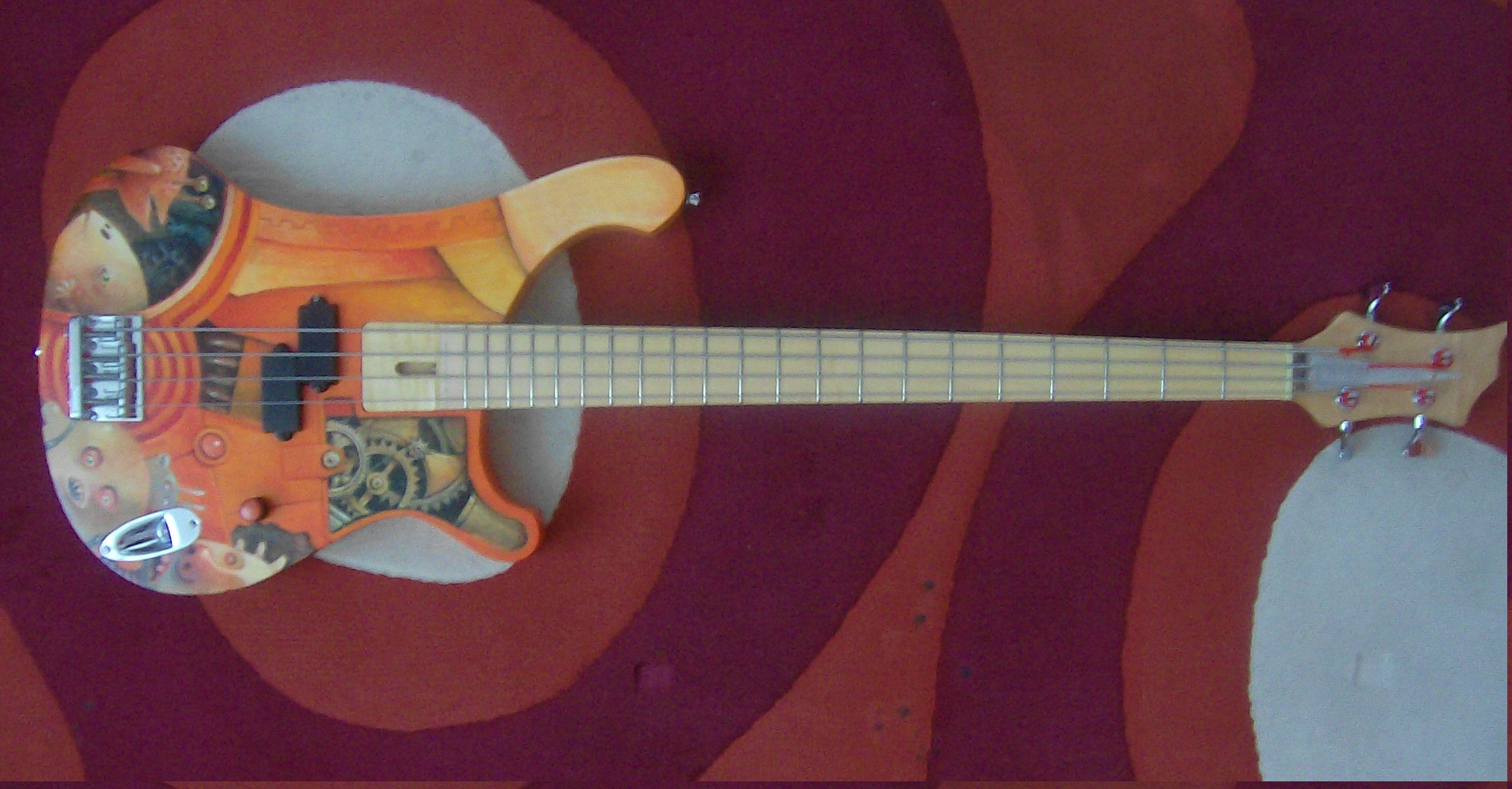ist gar kein pickguard, sondern draufgepinselt. (künstler: helge weizenkeim, HH)Das Zahnrad-Pickguard