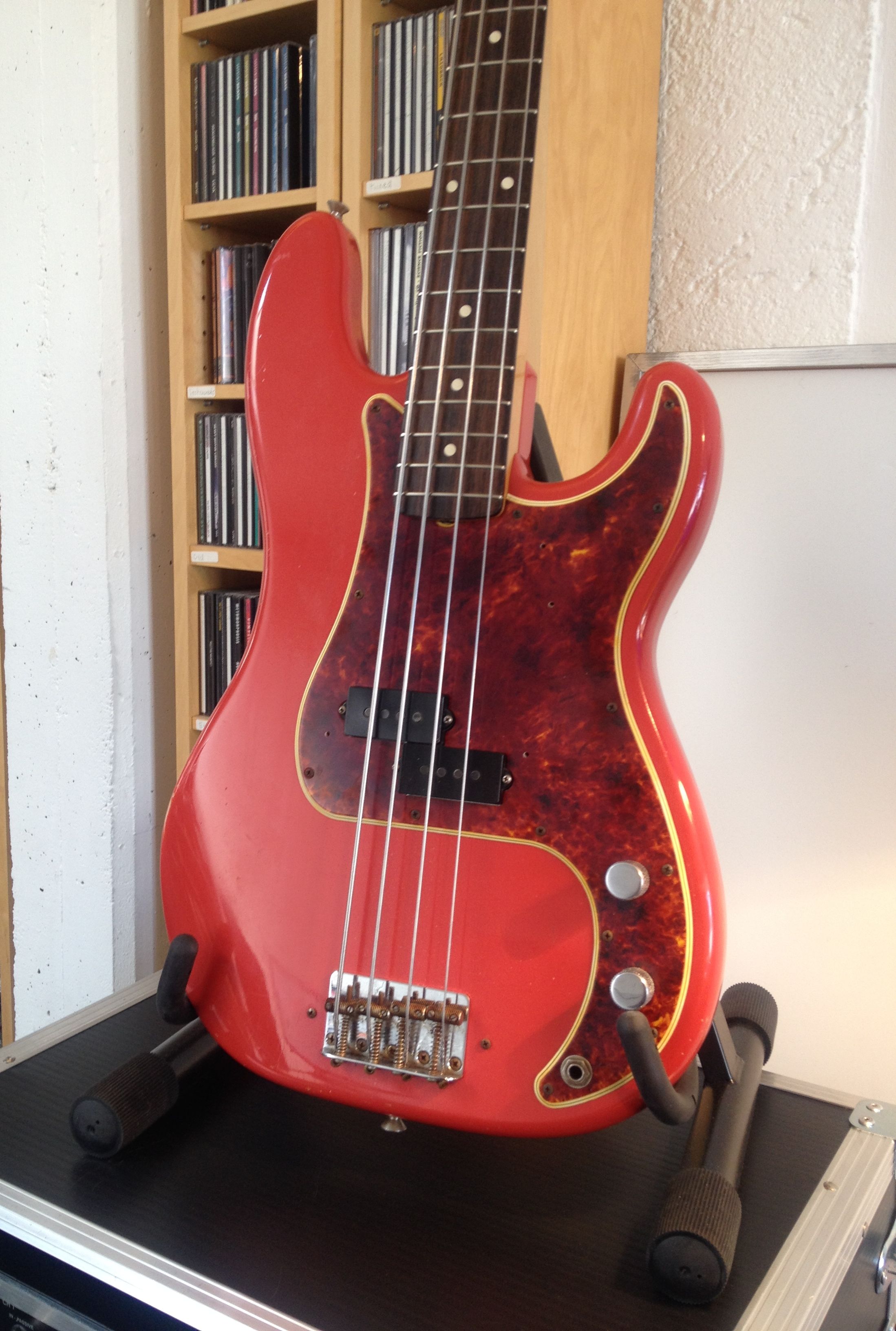 ah, roter Bass vor Billy (IKEA)with authentic 1960s tortoiseshell pickguards.made in 2015 !
