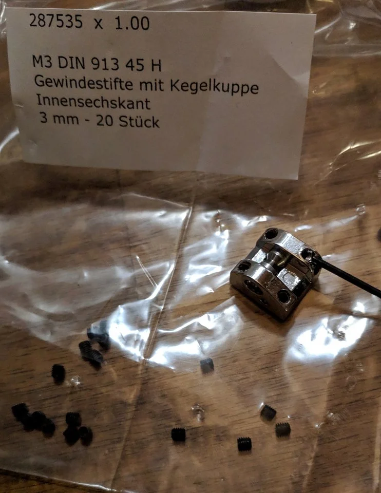 M3Huhu, leider hatte ich Zahnausfall an der Brücke (eine Madenschraube eines Böckchen verloren) kann mir jemand die Größe nennen?? M1 oder M1,x??? Habe Sandberg schon angeschrieben aber leider keine Antwort bekommen![]()