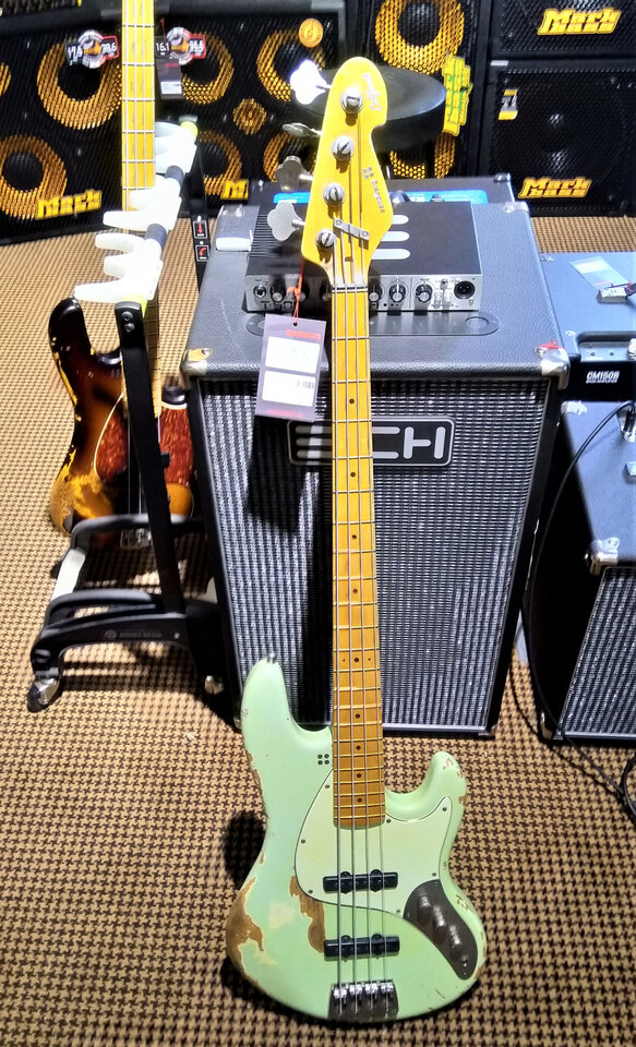 Alle fünf Bässe sind 4-Saiter und waren an einer Anlage von Eich angeschlossen. Alle Bässe sind wegen der tollen Hälse wirklich sehr gut zu spielen. Das Gewicht war an jedem Exemplar vermerkt (!) und lag zwischen 3,5Kg und 3,8 Kg. Die Bässe sind in der Reihenfolge des Anspielens aufgelistet: