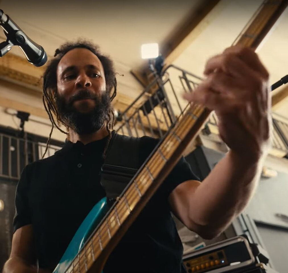 Ist gut produziert, in den Mix sauber reingesetzt, gut Kompression drauf und ganz clean ist das auch nicht, irgendwo leicht angeknuspert. Dazu spielt der Herr auch sehr feste, das erklärt auch die Telefonbuch-Saitenlage.Und ob Jérémie hier wohl ohne Effekt spielt?