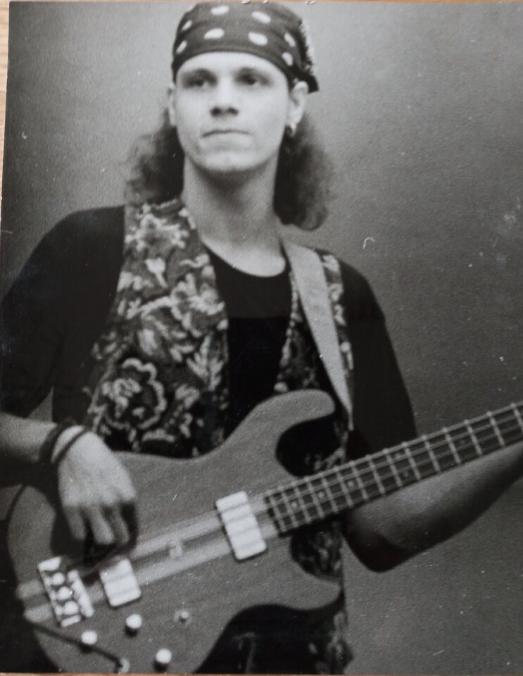 Damals, gegen Ende der 80er...mit Kramer Alu-Neck. Erstaunlich, was diese Bässe heute kosten, ich hab damals 300 DM dafür bezahlt. Und mehr ist der auch nicht wert, der war nämlich gar nicht mal so gut...