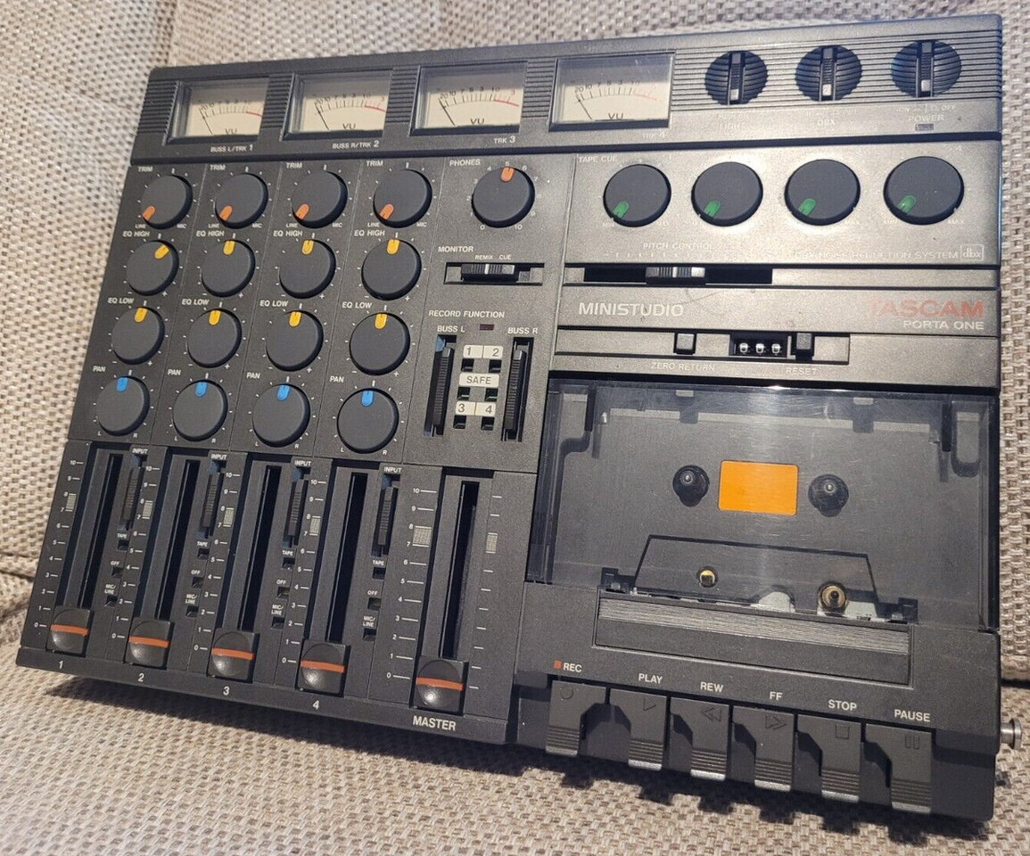 Hehe. Weckt alte Erinnerungen. Unsere ersten Demo-Tapes Anfang/ Mitte der 90er haben wir in ähnlicher Art und Weise, so weit ich mich erinnere, auf einja, das tascam mini-portastudio war in der tat ein kassettenrecorder der 4-spurige aufnahmen auf standart audiokassetten erlaubte. es sah auch aus, wie ein klassischer kassettenrekorder.