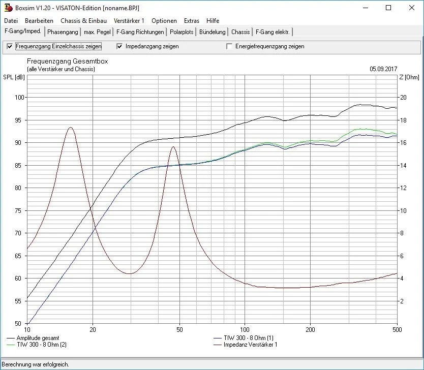 - blaue / grüne Linie sind die einzelnen 12"er, die jeweils 6dB unter der Gesamtkurve liegen
