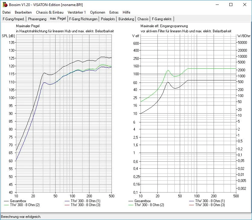 - der max.Pegel der Einzelchassis liegt 6dB darunter