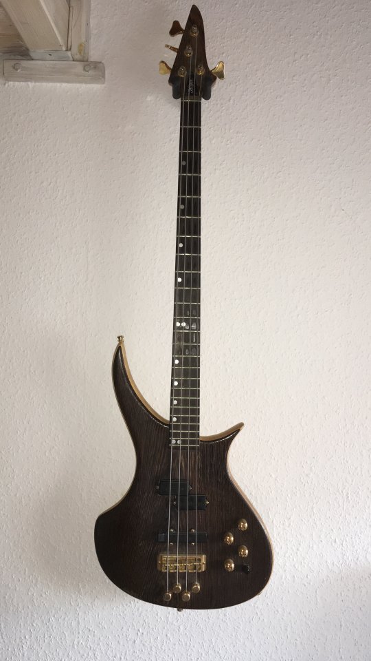 Die Lackierung hat Magnus Krempel (korrigier mich, Oli) vorgenommen. Ist n megageiler passiver Bass mit Nordstrand Vintage PU.