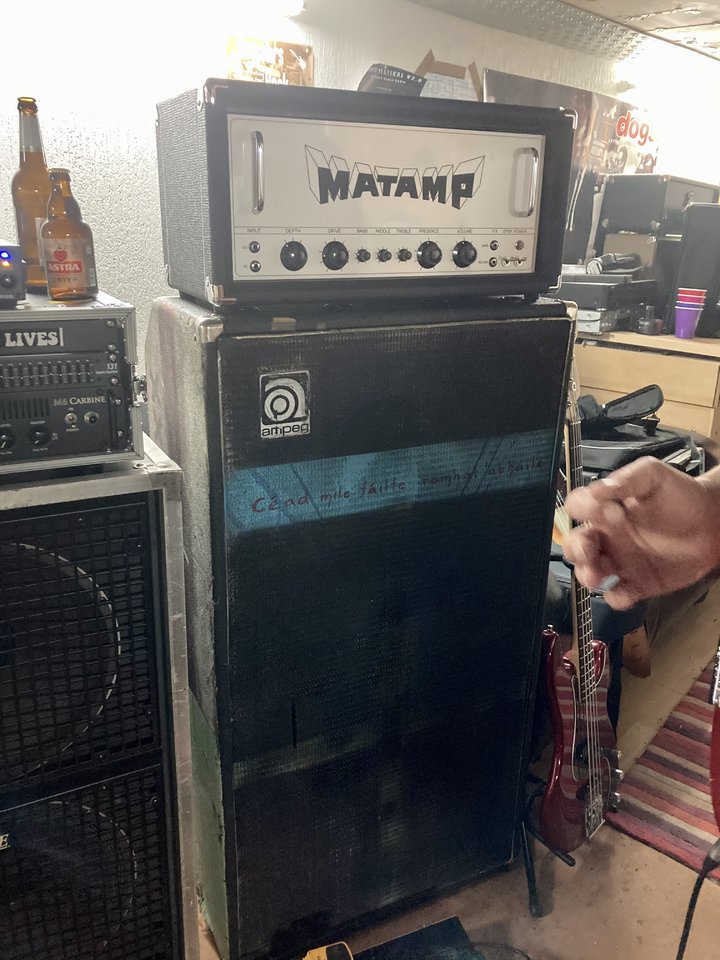 Was ist das eigentlich für ein Amp ganz rechts, der mit dem Schrumpfkopf oben drauf?Der 2. Split kommt später: