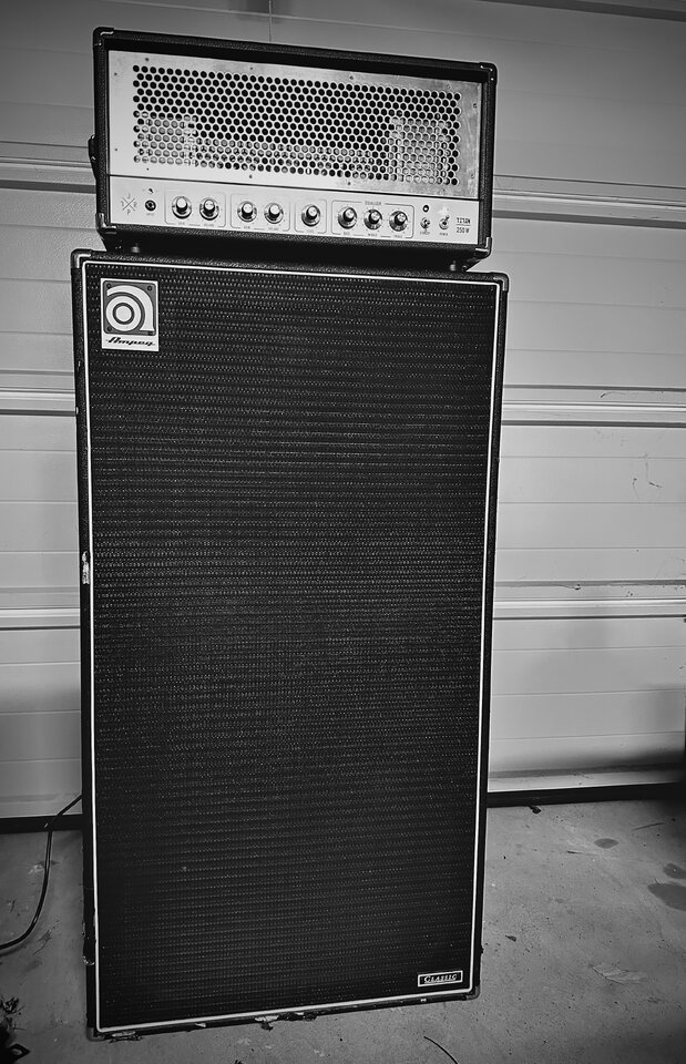 Band heißt "stallone" aus Frankfurt/Main. Bass ist aktuell 4-Saiter Musicman Sterling StingRay. Aber baue gerade meinen Traumbass zusammen (mit Baguley Hals, Haven Omnia Pickups, Suwak Body). Sound? Kommt noch!Ja, der war da auch... Verzerrt fett, aber nicht clean fett. Für den Ampeg fridge passen..