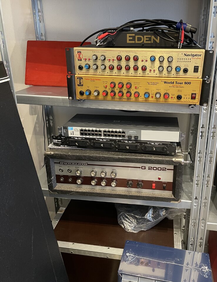 Eden Preamp Navigator (wartet aufs Rack), darunter der WT800 (hat Probleme).