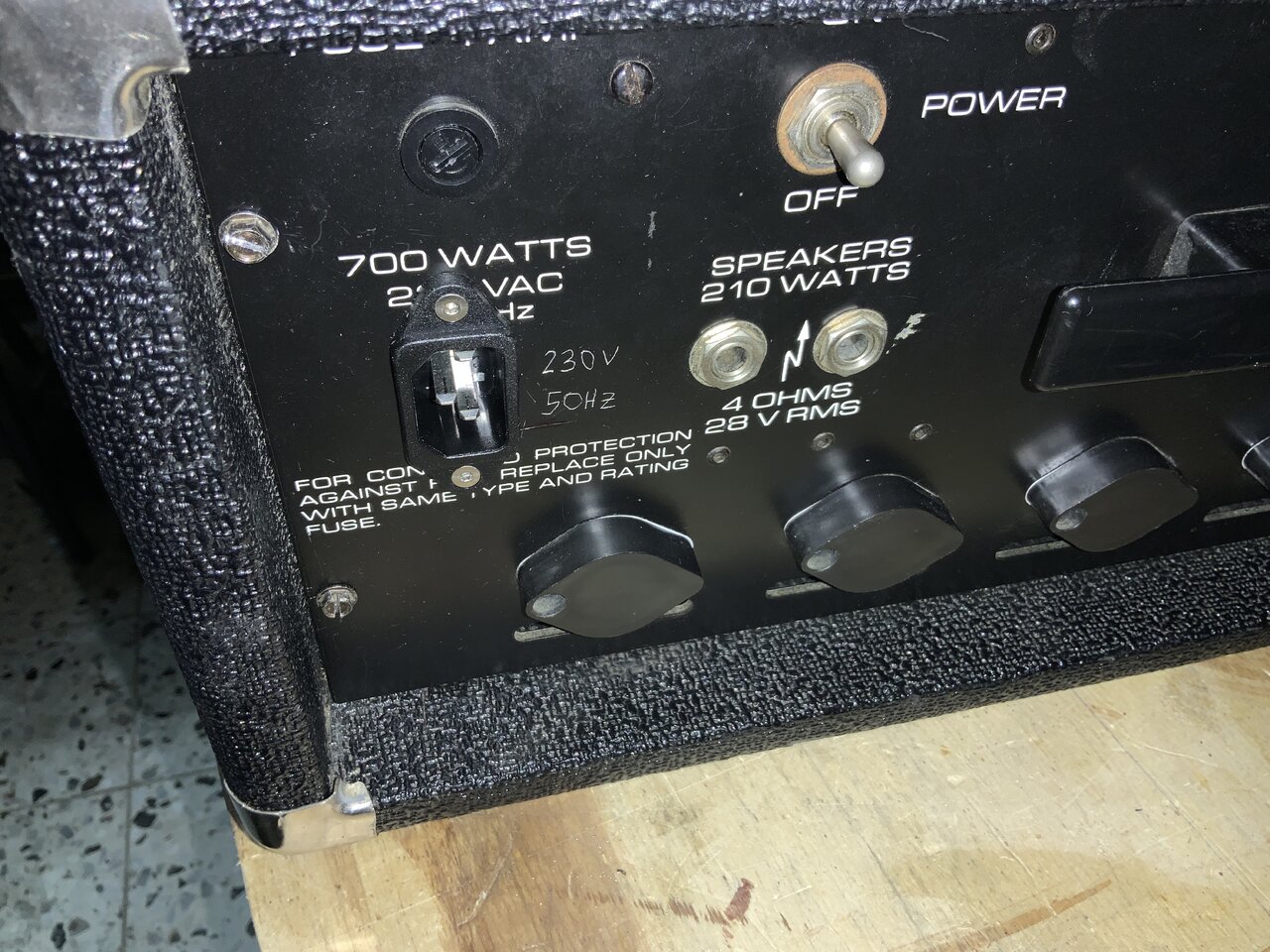 Das ist der Amp ohne das Gehäuse an meiner Power Sink. Links und rechts sind Vorder- und Rückpanel des Amp, sonst ist nur der Trafo in dem Gehäuse. Das Gehäuse habe ich auch überholt, die Knöpfe hatte ich in der Spülmaschine, dann war der Schmoffer erstmal weg , die sehen aus wie neu.