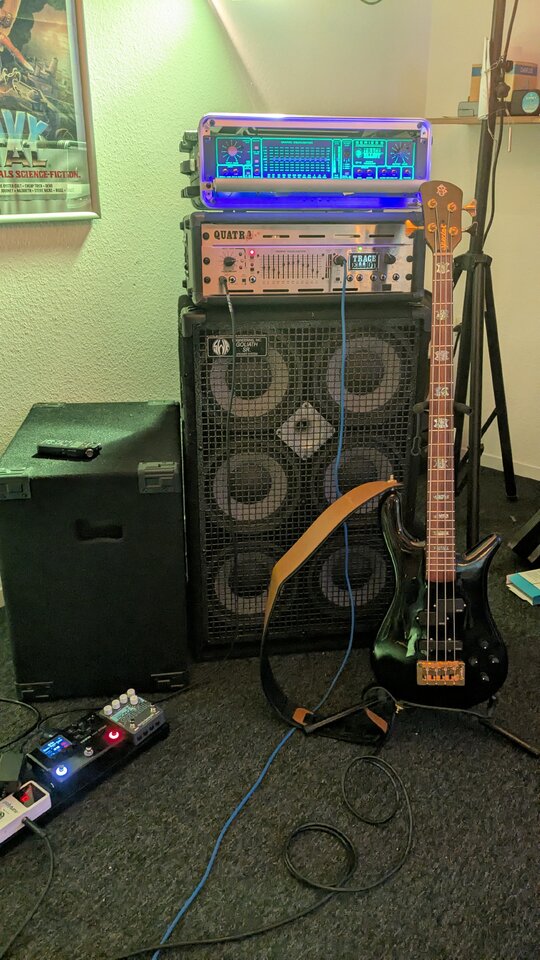 Mit dieser Einstellung bin ich dann in die Probe gegangen und wie es meistens so ist, musste ich auch dann noch korrigieren. Hatte auch noch einen neuen Satz Saiten aufgezogen und die Box stand Fett im Bandsound (Trio), der Bugi hat sich voll entfaltet.