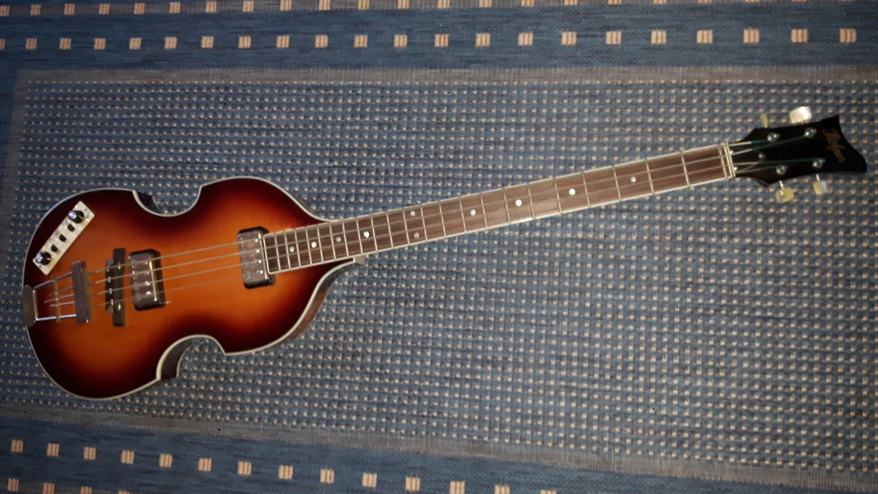 Diese Linie oberhalb des Gurtpin ist kein Bruch. Der Hals ist bei den Höfner Bässen aus verschiedenen Hölzern zusammen geleimt. Das ist so eine Leimstelle.Hab ich was an den Augen, oder hat der am Halsfuss einen reparierten Bruch?