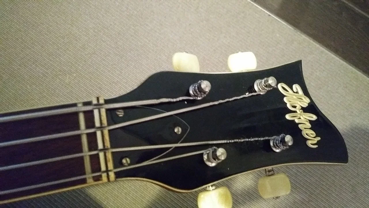Na gut, wenn die Leimung dahin gehört...hab aber so einen Bass noch nicht angefingert, hatte nur einen 185 zum lernen, vor ca 45 Jahren.Diese Linie oberhalb des Gurtpin ist kein Bruch. Der Hals ist bei den Höfner Bässen aus verschiedenen Hölzern zusammen geleimt. Das ist so eine Leimstelle.
