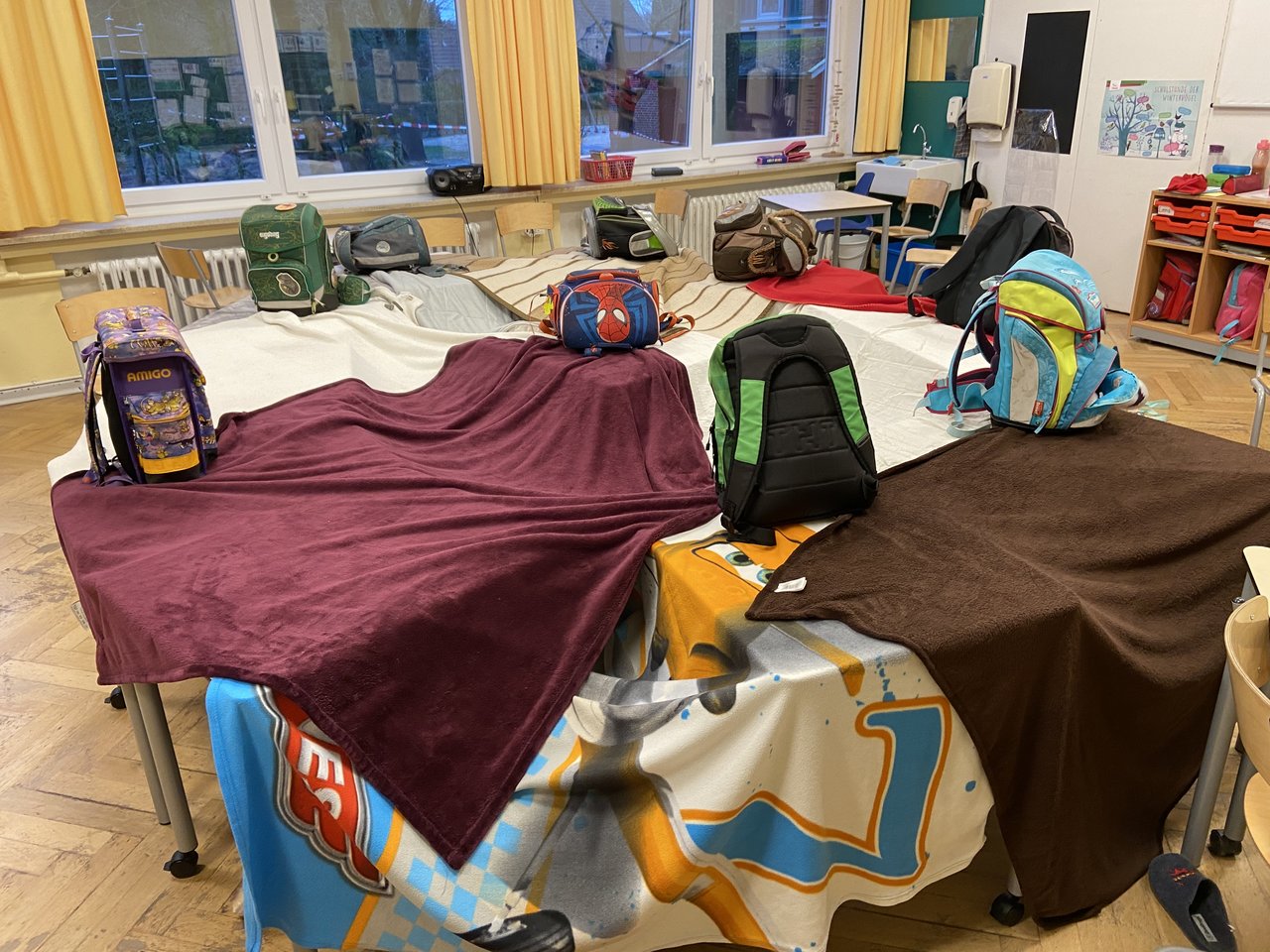 Ts, ts,diese Ostfriesen. Kaum sind Sie von den Bäumen runter, hausen sie schon in Höhlen.Ich hatte heute einen richtig guten Tag. Wir haben in der Klasse Höhle gebaut und bei Naschereien und Kuscheltieren witzige Vorlesegeschichten gehört.