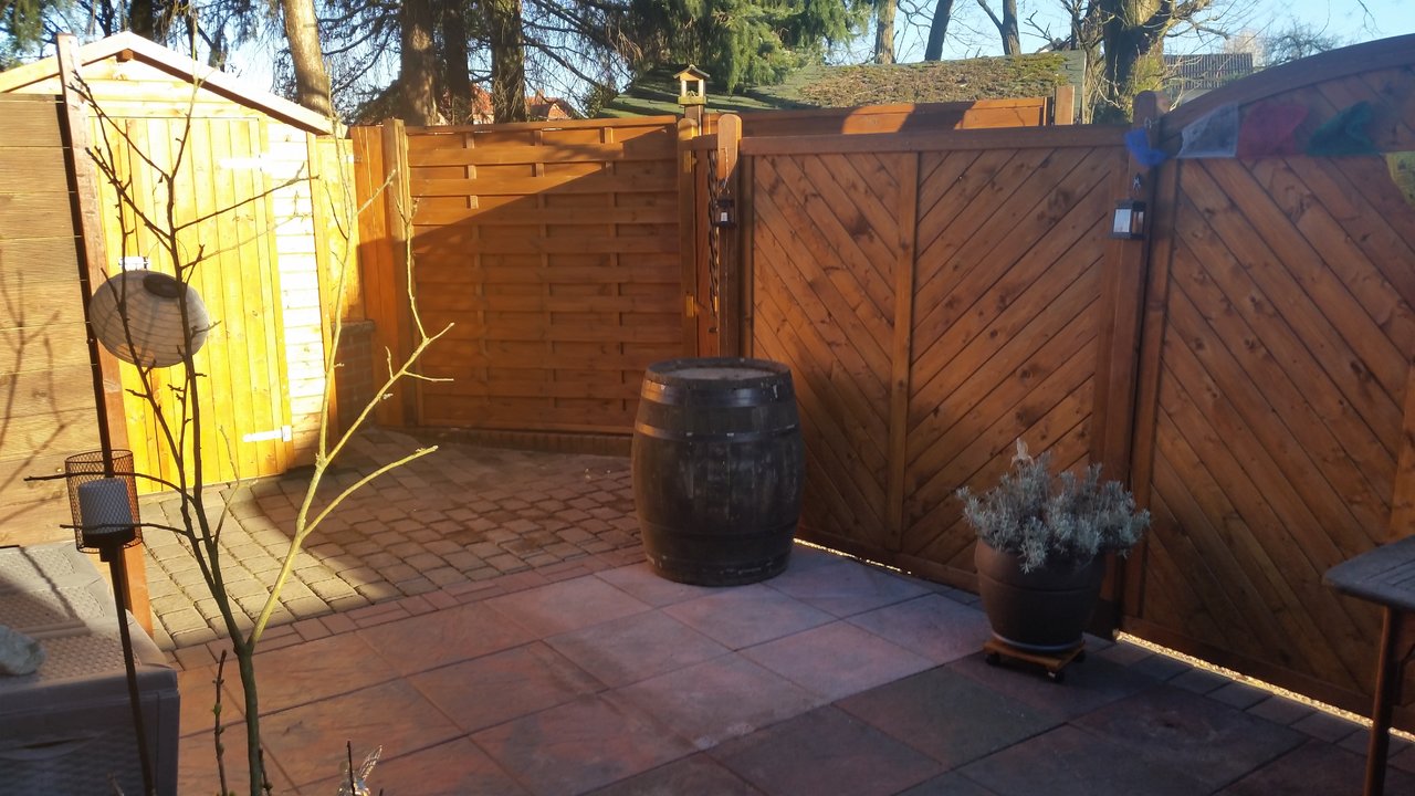 Den Grillkamin habe ich demontiert und entsorgt. Dafür habe ich mir ne bewegliche Grillstation zugelegt , die in den Schuppen passt. Jetzt brauchen wir noch ein paar neue Pflanzen, dann ist alles wieder schick. Aber das geht ja jetzt leider noch nicht.