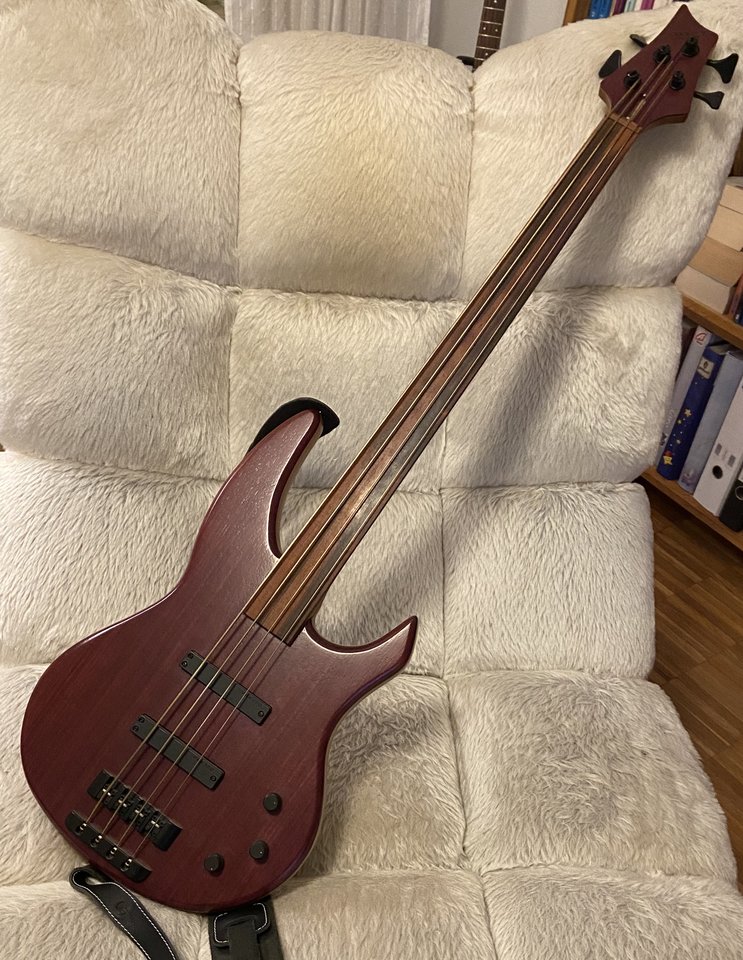 Wenn ich mal die Sau rauslassen muss, hab ich noch einen anderen Bass, auch selbst gebaut, in Anlehnung an Rickenbacker.