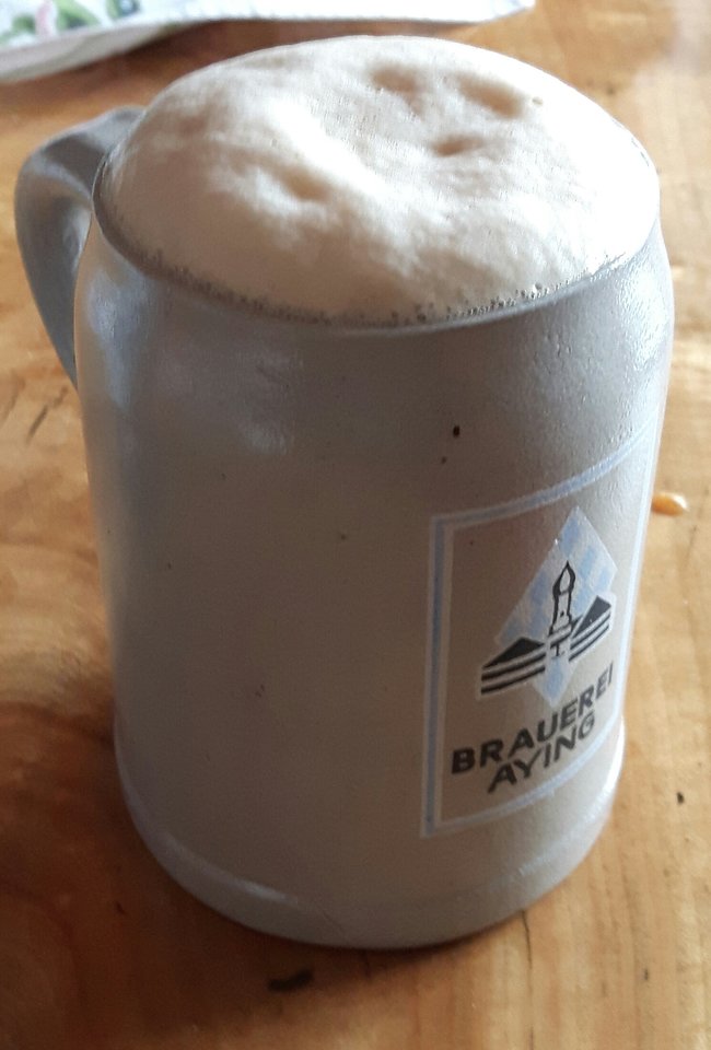 So kommt man auf eine angemessene Größe - ein schöner Café au Lait hat auch bei mir ’s gleiche Volumen wie a Halbe.Wieso machst Du Kaffee Latte im Bierkrug? Habt Ihr keine Gläser?![]()