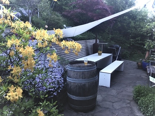 ... Danke, hab ich zum Feierabend im Garten am Faß genossen.