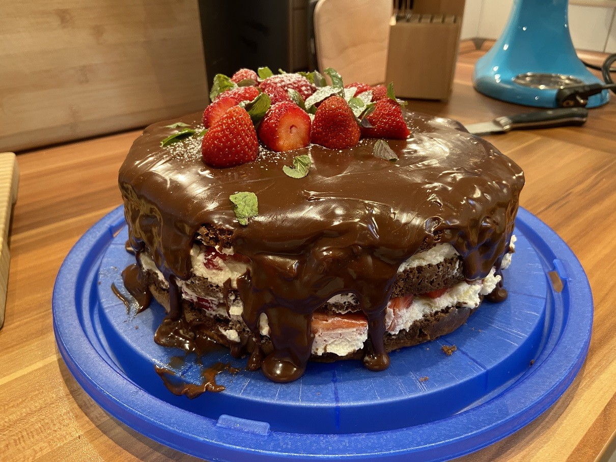 So, die Erdbeer-Schwarzwälder Torte ist fertig.