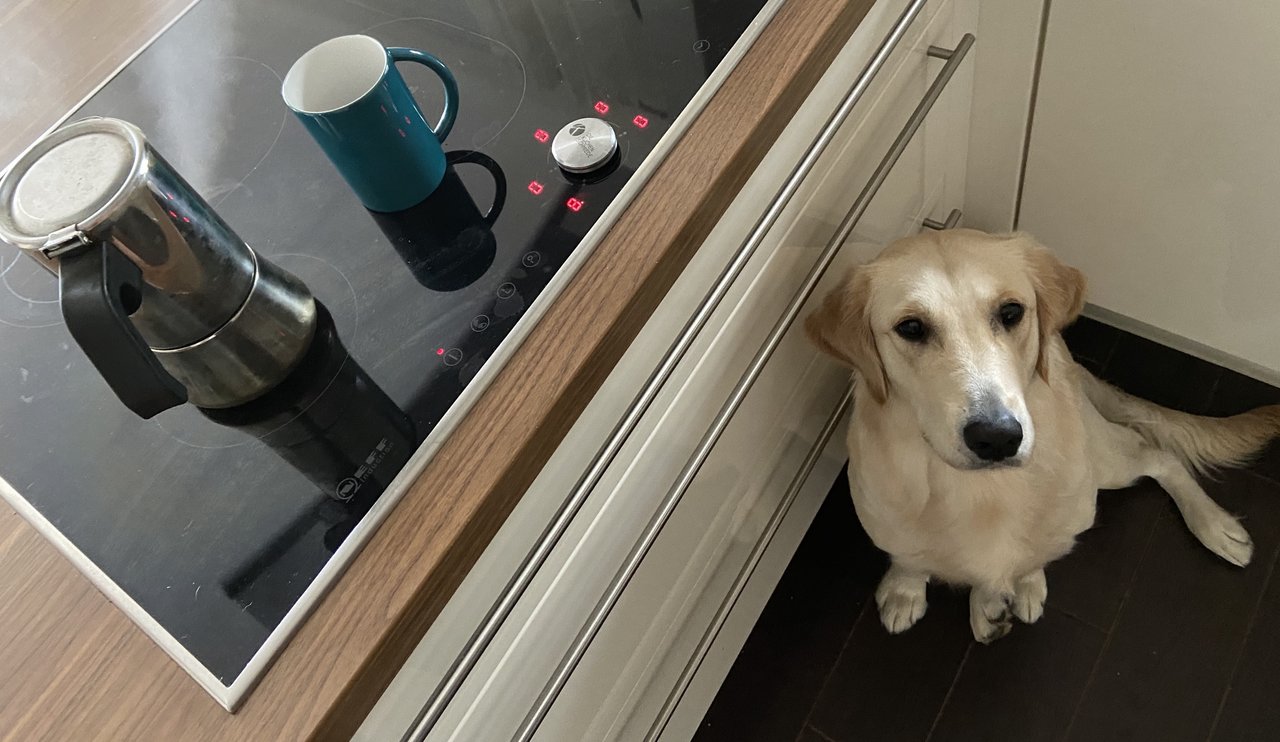 also dochdie schmusen will und mein Kaffee.