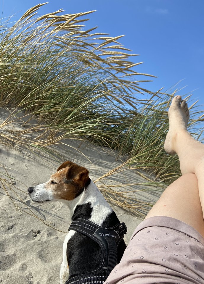 Ich lieg mit Kiri in den Dünen.