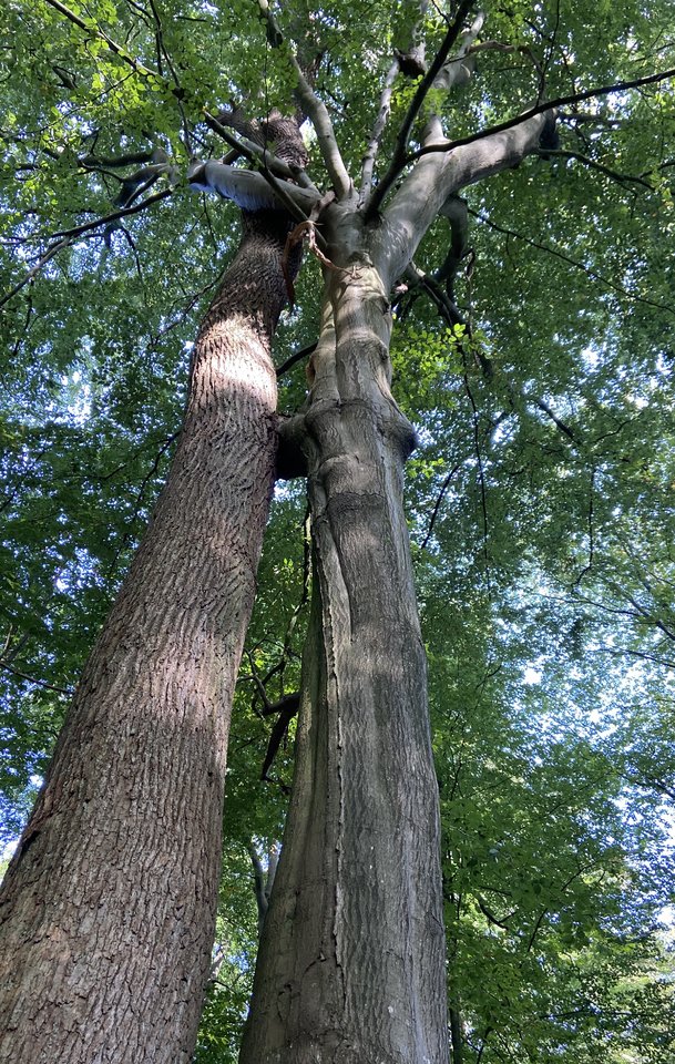 Buche und Eiche in inniger Umarmung. Mir fehlt meine Eiche. Noch immer.