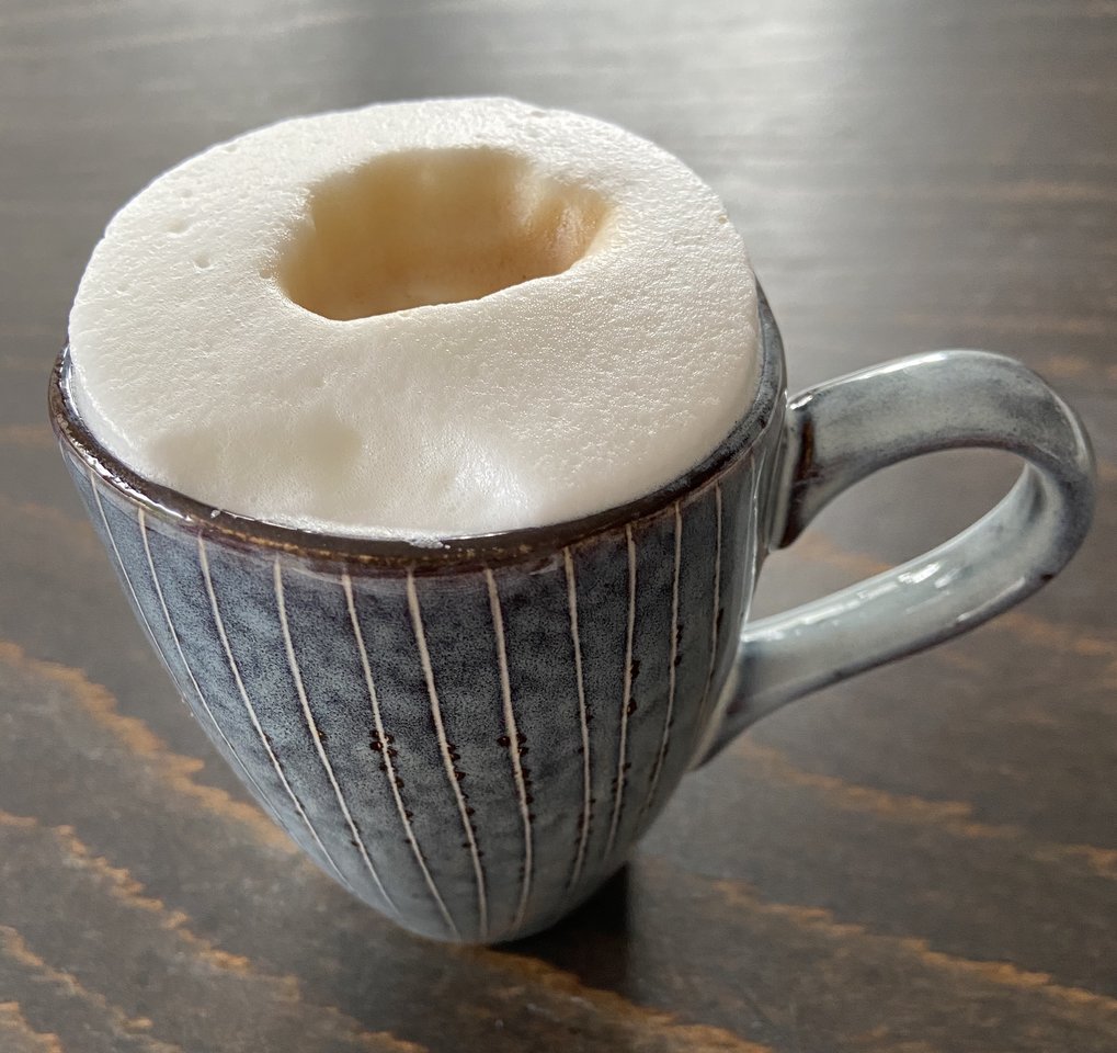 Bier gibts in etwa 6 Wochen.Bier in einer Tasse? Wie stillos. Und der Schaum ist auch komisch. Ich würde die Kneipe wechseln.