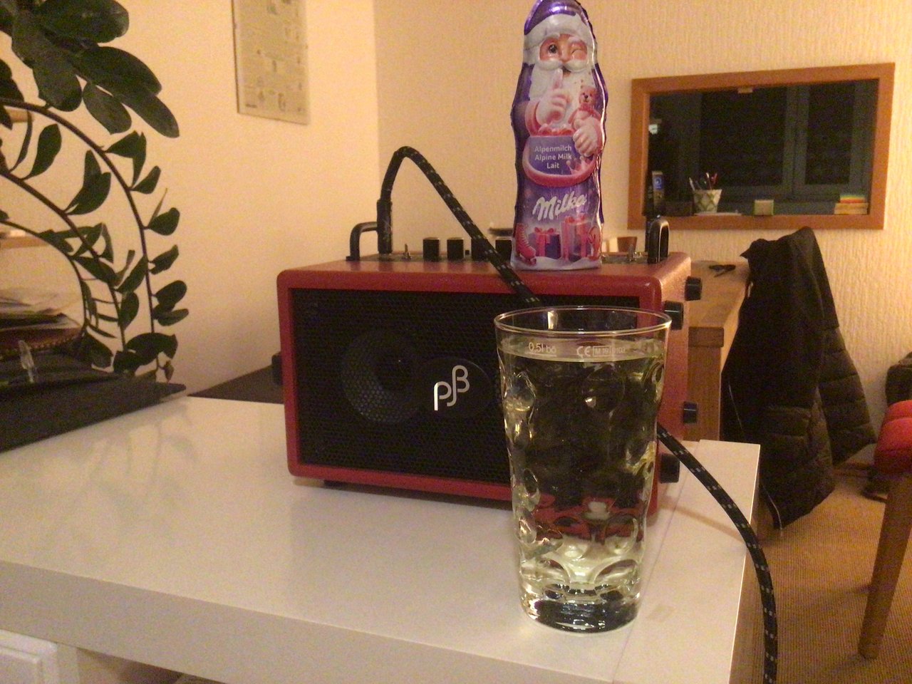 Ist das ein esoterischer Versuch, Schorle durch einschwingen mit Bassfrequenzen trinkbar zu machen?