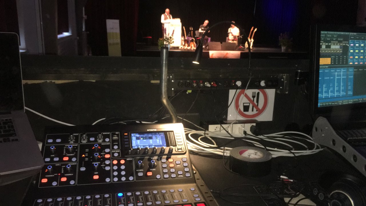 Das Midas funktioniert vom Workflow nicht ganz so intuitiv wie ich mir das von meinem Allen & Heath gewohnt bin, aber es war einfach genug, dass ich das in den Griff bekam. Die Anlage ist sehr gut auf den Saal abgestimmt, somit hatte ich es mit dem Saalsound eigentlich sehr einfach und konnte ohne Stress auf sämtliche Wünsche der Musiker und des Sprechers eingehen. Für das Licht hatte ich mir zwei statische Szenen eingerichtet, denn ich bin mit Licht nicht besonders kreativ.