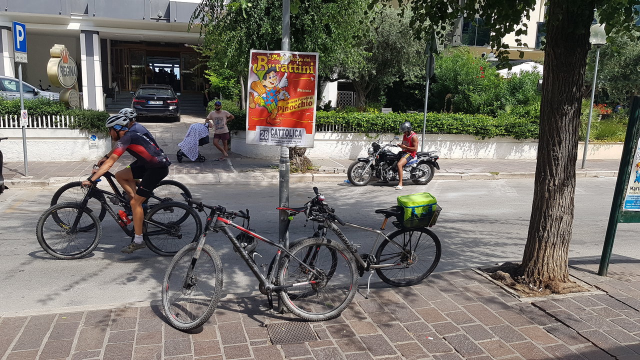 großartige Bildgeschichte...Harleyfahrer schraubt abgesprungene Lenkervibrationsdämpfer an, wird dabei von zwei Radfahrern gnadenlos überholt, während die Dame im rosa T-Shirt ihre Schließmuskelfunktion zu kontrollieren versucht bevor es mit ausgeschlafenen Baby zum Zirkus Burattini geht