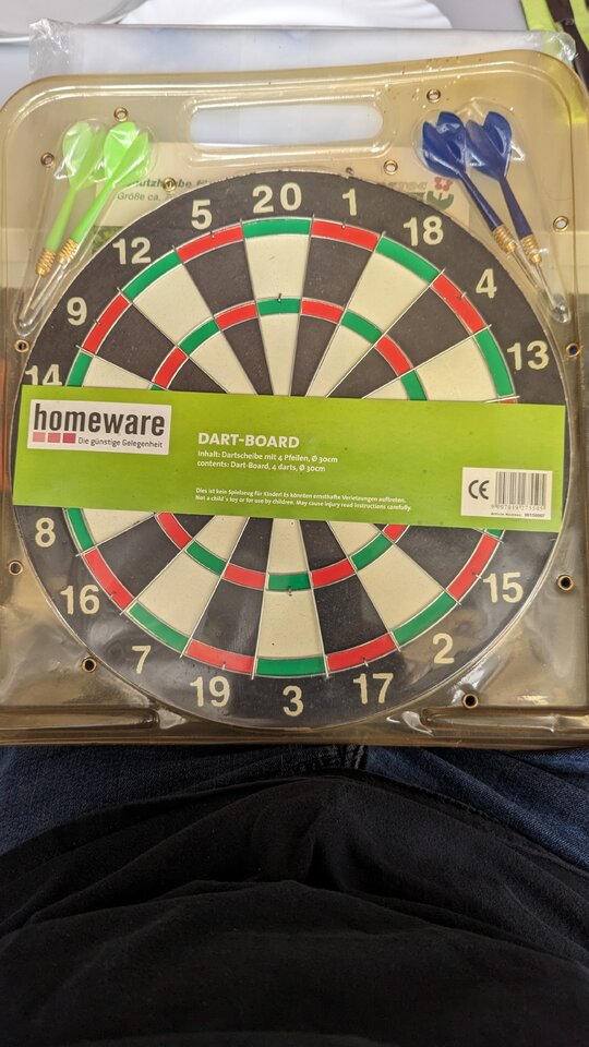 Also die Dartscheibe geht ja noch, aber die Schutzhaube