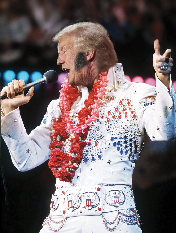 Mein Gott, dass das noch niemand früher erkannt hat? Ganz klar, Donald Trump IST Elvis Presley, da gibt es keinerlei Zweifel. Diese Ähnlichkeit ist NICHT zu übersehen. Beim Betrachten dieses Fotos wird es selbst dem ärgsten Zweifler wie Schuppen aus den Haaren fallen, dass es einfach nicht anders sein kann. Elvis lebt!