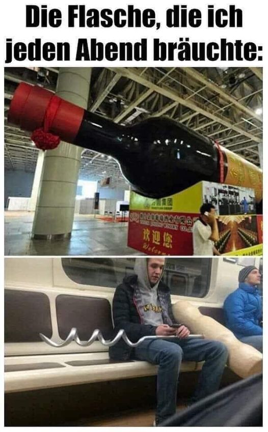 Weil ich die Buddel nicht durch die §$%@!xxx Tür bekomme.![]()