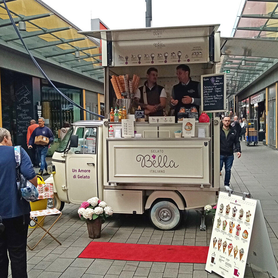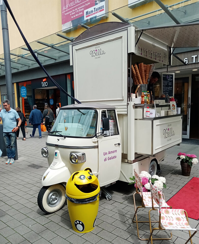 Un Amore di GelatoGestern war ich im Main-Taunus-Zentrum, ein Einkaufszentrum vor den Toren Frankfurts. Und da sah ich dieses megascharfe Gefährt, das ich unbedingt fotografieren musste. Ich weiß ja, dass es auf der Parkbank einige Leute gibt (und nicht nur den Grafen), die eine Schwäche für solche Vehikel haben. Also ich finde das Teil absolut originell.
