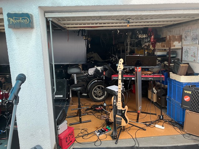 Haben gestern einen in reinster Bedeutung "Garagen-Gig" gespielt. War warm, roch zwischen diversen Motorrädern nach Benzin, Drogen waren also nicht notwendig.Die Biker haben uns begeistert gefeiert, auch wenn nachher der ein oder andere verächtliche Kommentar angesichts unserem Konsum an bleifreiem Bier fiel. Es war mal wieder ein Fest unter besonderen Bedingungen.