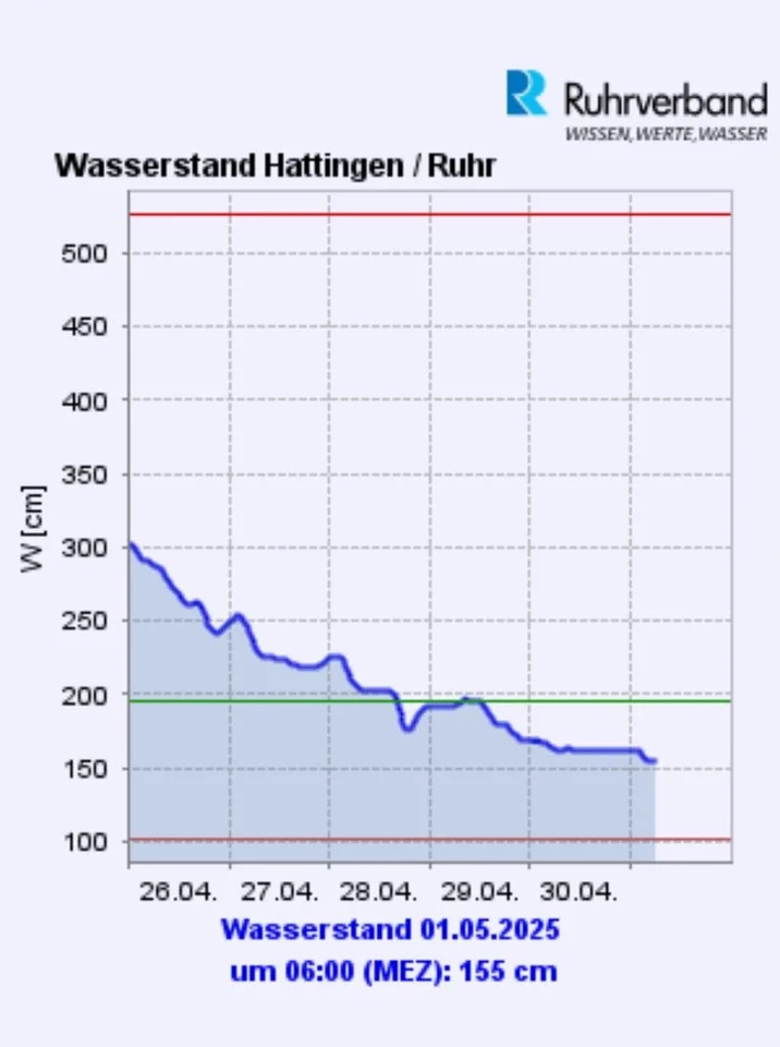 Danke @Willie für die Wetterstandsmeldung aber sag' mal 155cm Wasserstand an der Ruhr kommt mir ein bisschen wenig vor.
