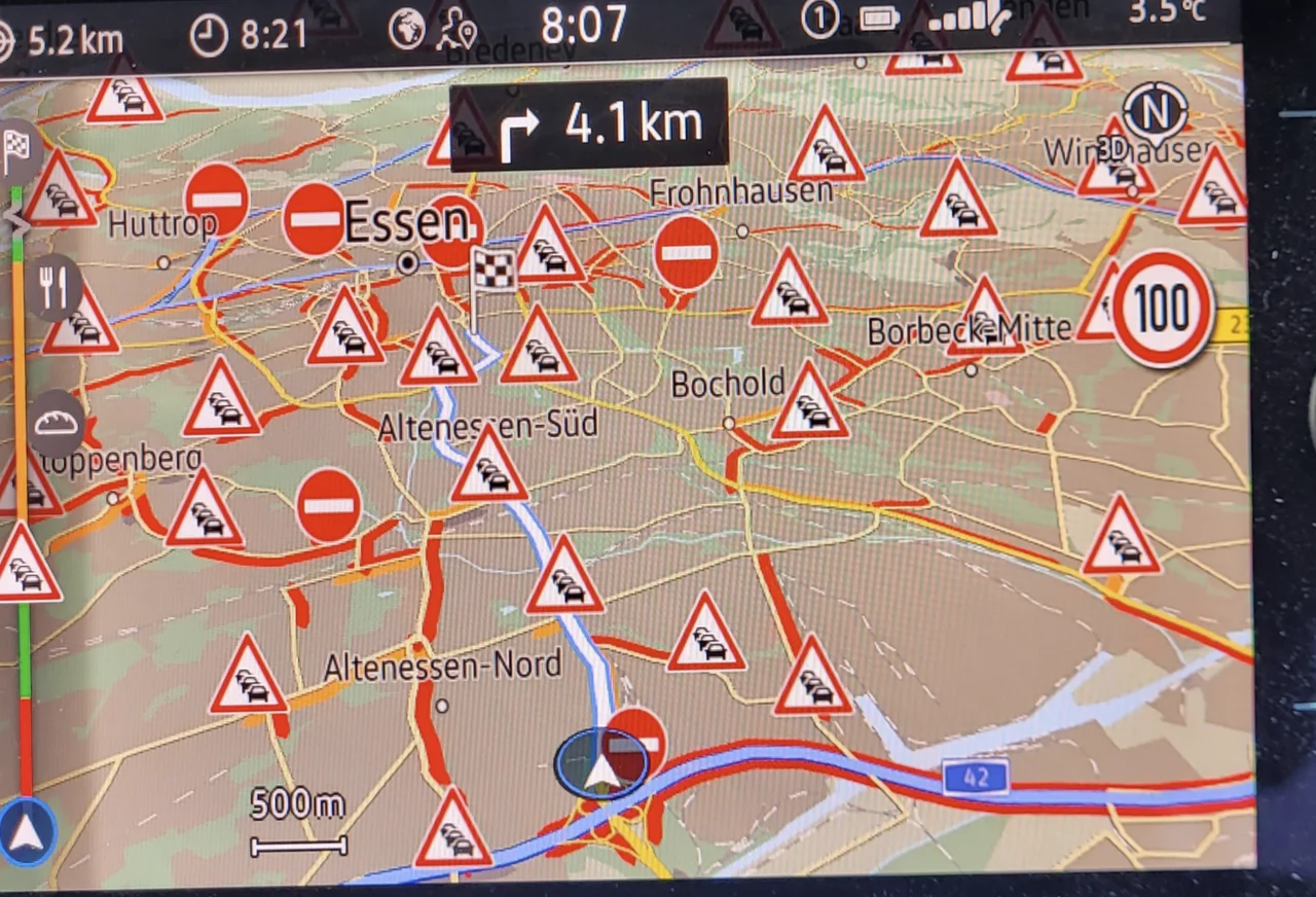 Haha, das mach ich seit 2 Jahren, ich fahr ja täglich 160 km, weil ich zunächst meinen (behinderten) Sohn von HAT nach RE zur Ausbildung fahren muss. DAnn fahr ich nach Essen zu meiner Arbeit und wieder zurück. Seit 2 Jahren ist in Witten eine Baustelle die es mir verwehrt, von HAttingen direkt auf die A43 aufzufahren. Deshalb muss ich einen kleinen Umweg nach Bochum fahren, um dort dann über die neu geschaffene A448 auf die A43 zu kommen. Und die hat in der MItte (Herne) ja noch die große Brückenbaustelle.Guten Morgen allerseits aus dem sonnigen Mühldorf a. Inn,